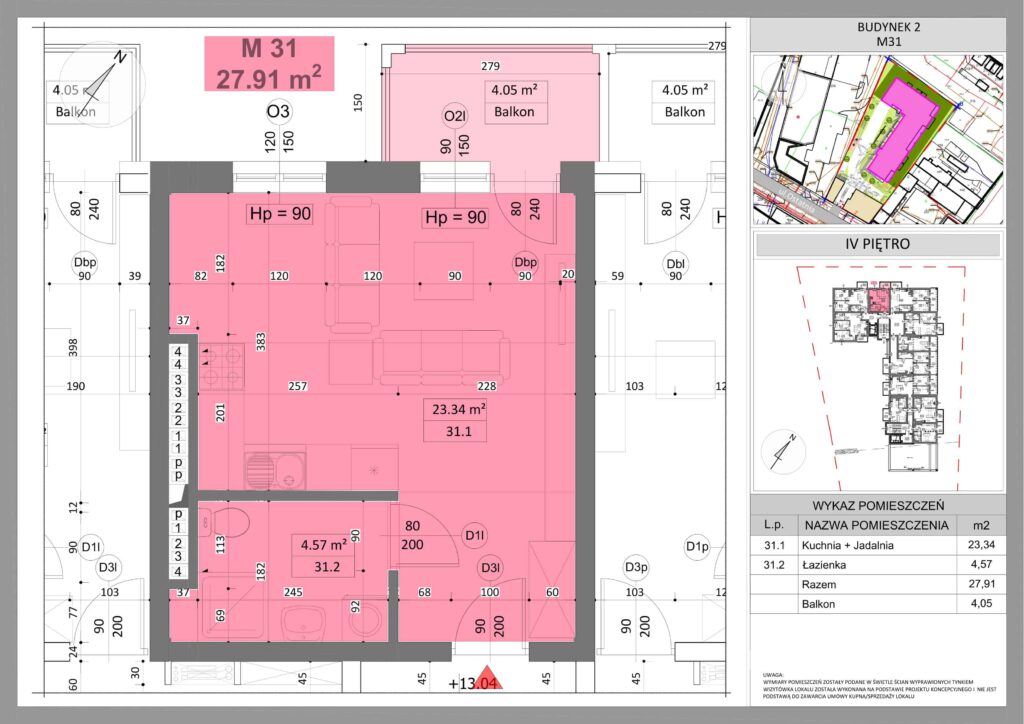 Piętro 4 3 pokoje z aneksem kuchennym